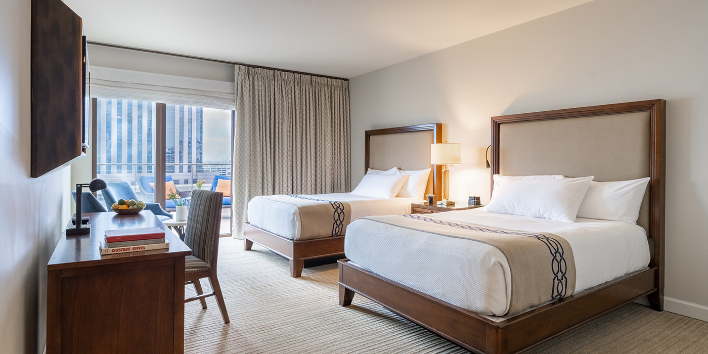 Float high above the streets in one of the Terrace Deluxe Rooms, set on the hotel's tranquil penthouse level, offering up to 642 square feet of living space. With panoramic views of New Orleans' skyline, these Deluxe rooms feature two queen beds and a private terrace. The 9th floor is where the rooftop pool and bar are located, so you'll be steps away from one of the hotel's best features.